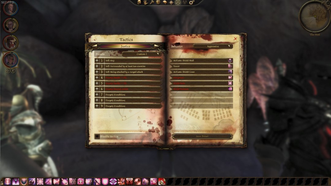 I hate the combat tactics in this game. They get in the way of everything, and I can’t explain how they work or how to make them easier. Let’s take a step back and explain what the combat tactics are. Basically, it’s an if-then statement in a game menu. If XYZ companion falls below 25% health then they will use a minor health potion. Or, when the battle starts, your mage will cast XYZ spell.