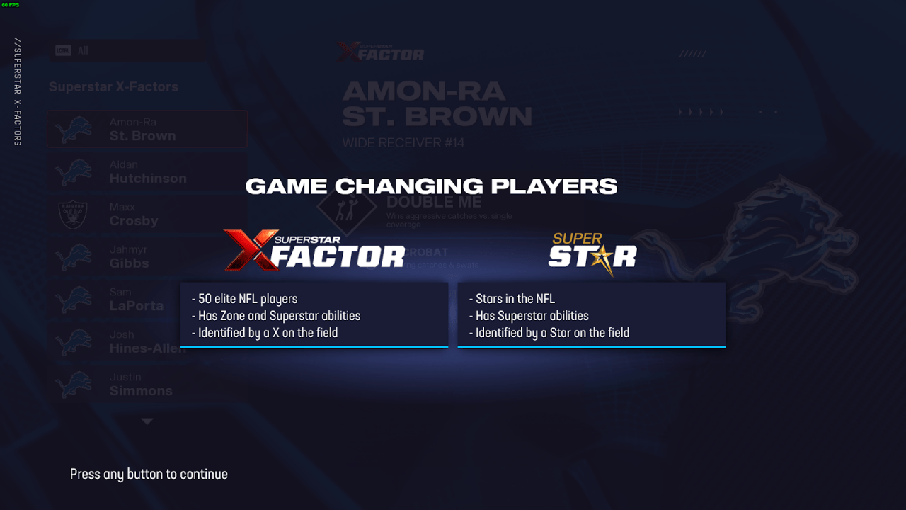 One is the “X-Factor” players. Its the highest level of superstar, and something you can customize in leagues to set a hard cap on so that they feel more special. High level, if this player performs some feat (2 catches over 10+ yards, 1 sack, etc.) it activates a special ability that helps them become even more dominant. It’s a tremendous feature that I think is one of the highlights of the game in its history.